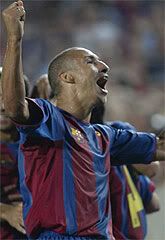 It was difficult, Barca against Arsenal's 10 clean sheets (nearly a thousand minutes of clean-sheet time)..in the Champs League this season, Arsenal had only let in 2 goals and Barca was up against that record. Arsenal held on, locking up their defence with 9 men most of the time, leaving Henry alone upfront. Arsenal were still dangerous on the break with their trademark sharp passing. Ljunberg and Fabregas on occasions, breaking through and of course, Henry with his breathtaking skills, always manage to bring danger to Barca's defence. They were fortunate that Valdes was up to the task, lucky at times. Ljunberg was fouled many a times in a desperate attempt to stop his runs.